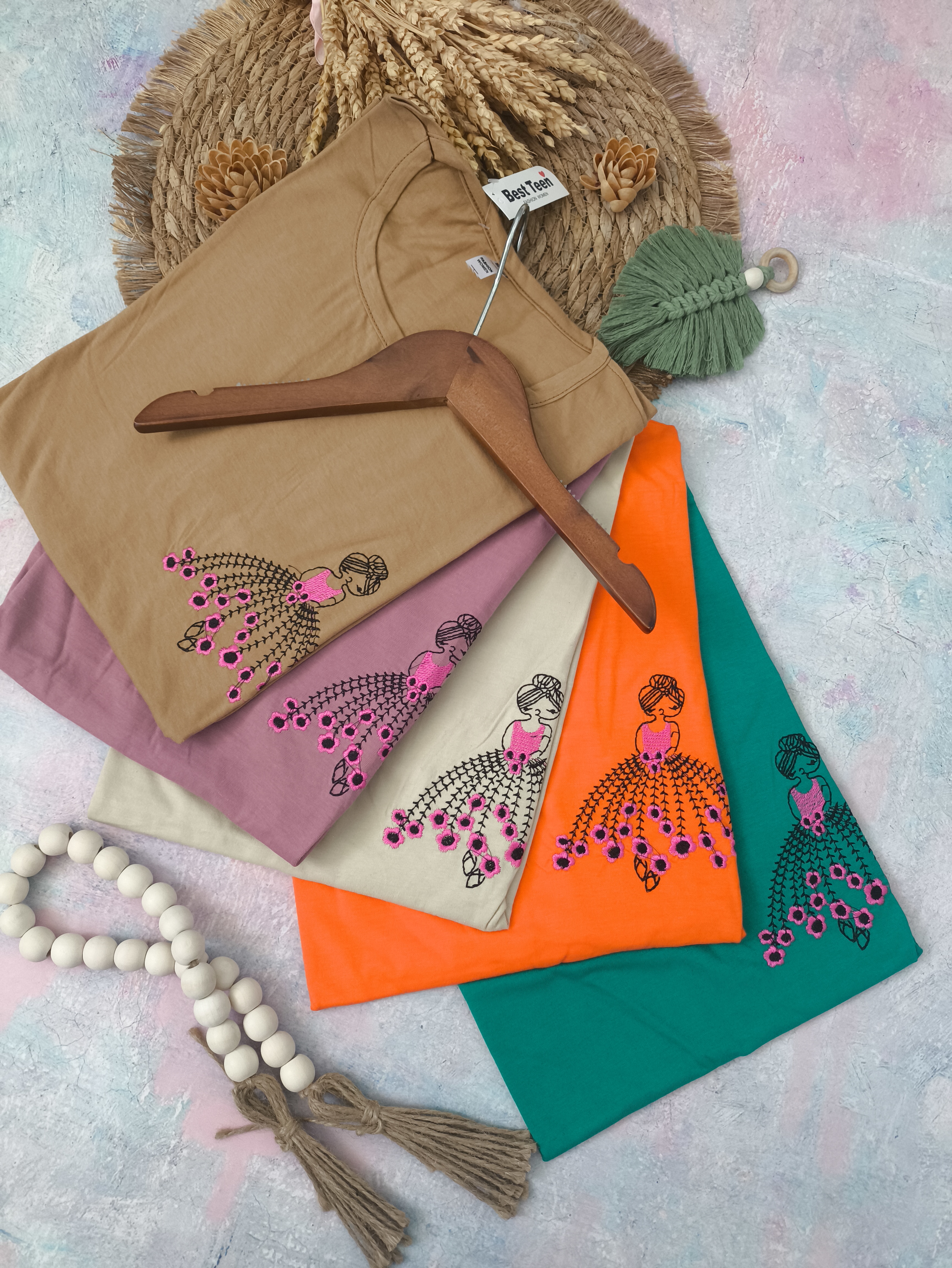 ناموجودتیشرت زنانه گلدوزی دختر دامنی