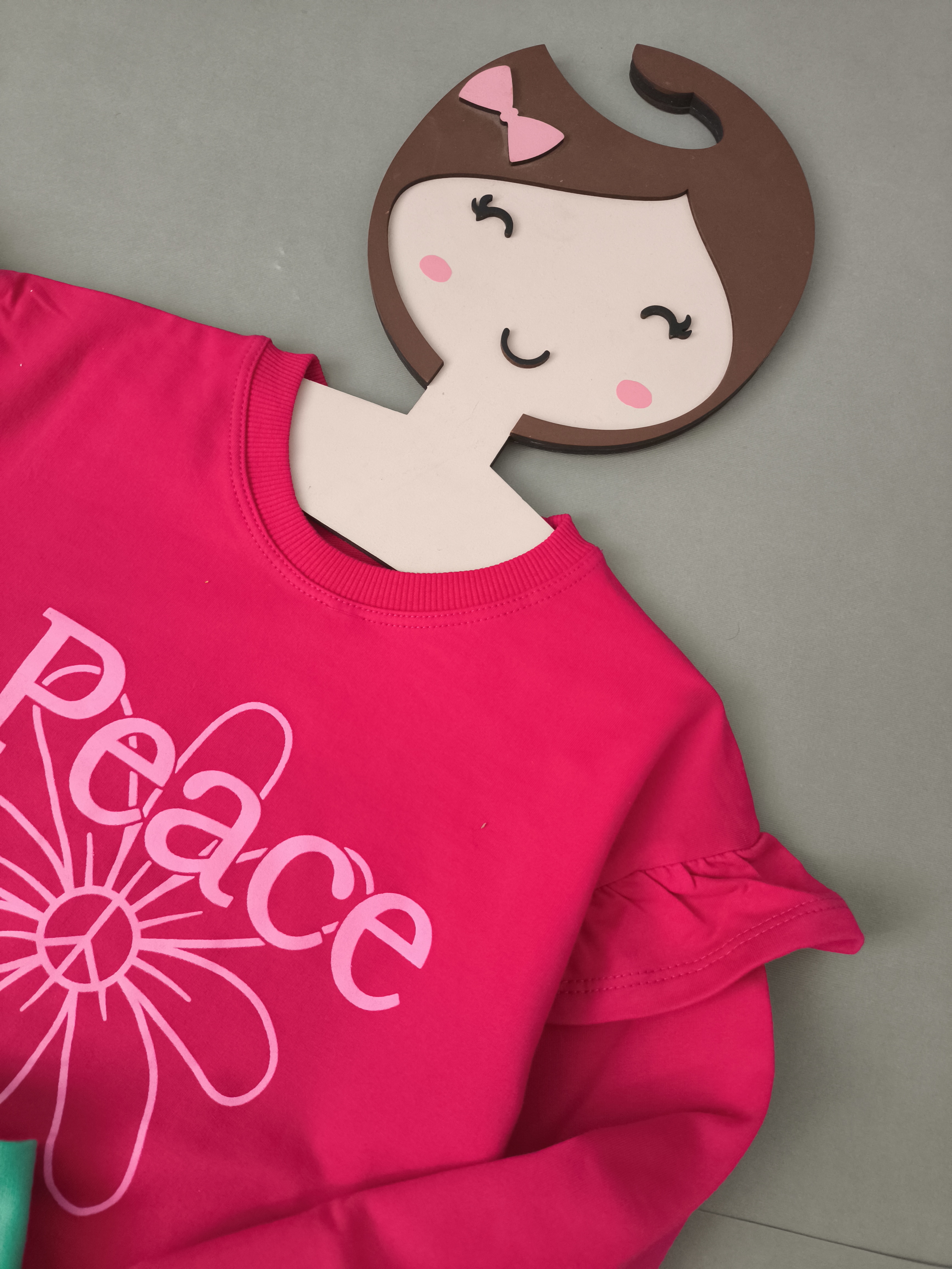 از کیفیتش هرچی بگم کم گفتم بدون اینکه پلی استر داشته باشه و تن کوچولوتو اذیت کنه چاپ ساده و قشنگش که مناسب هر جایی باشه چین چینی سرشونش که خیلی دلبرش کرده.
