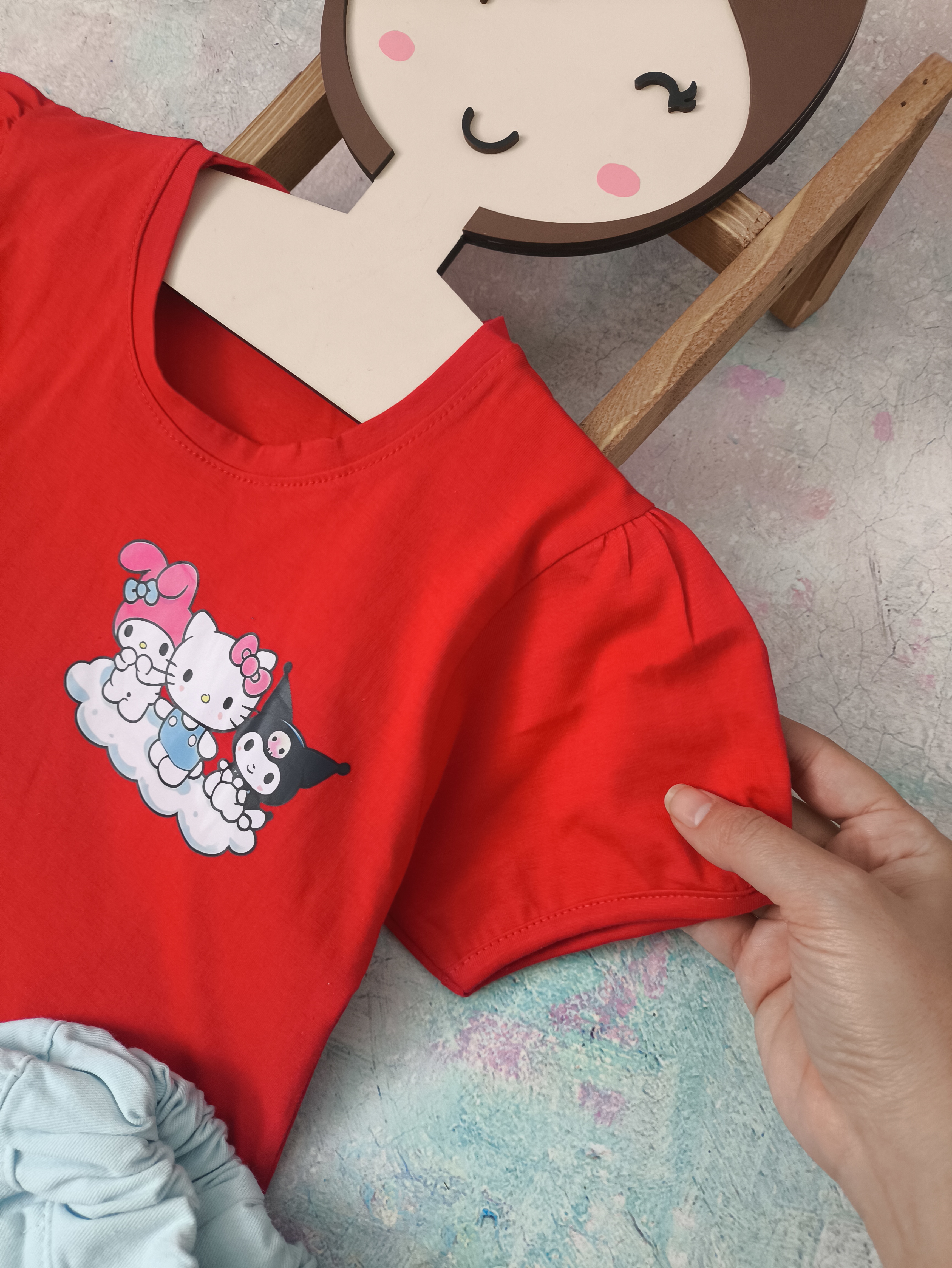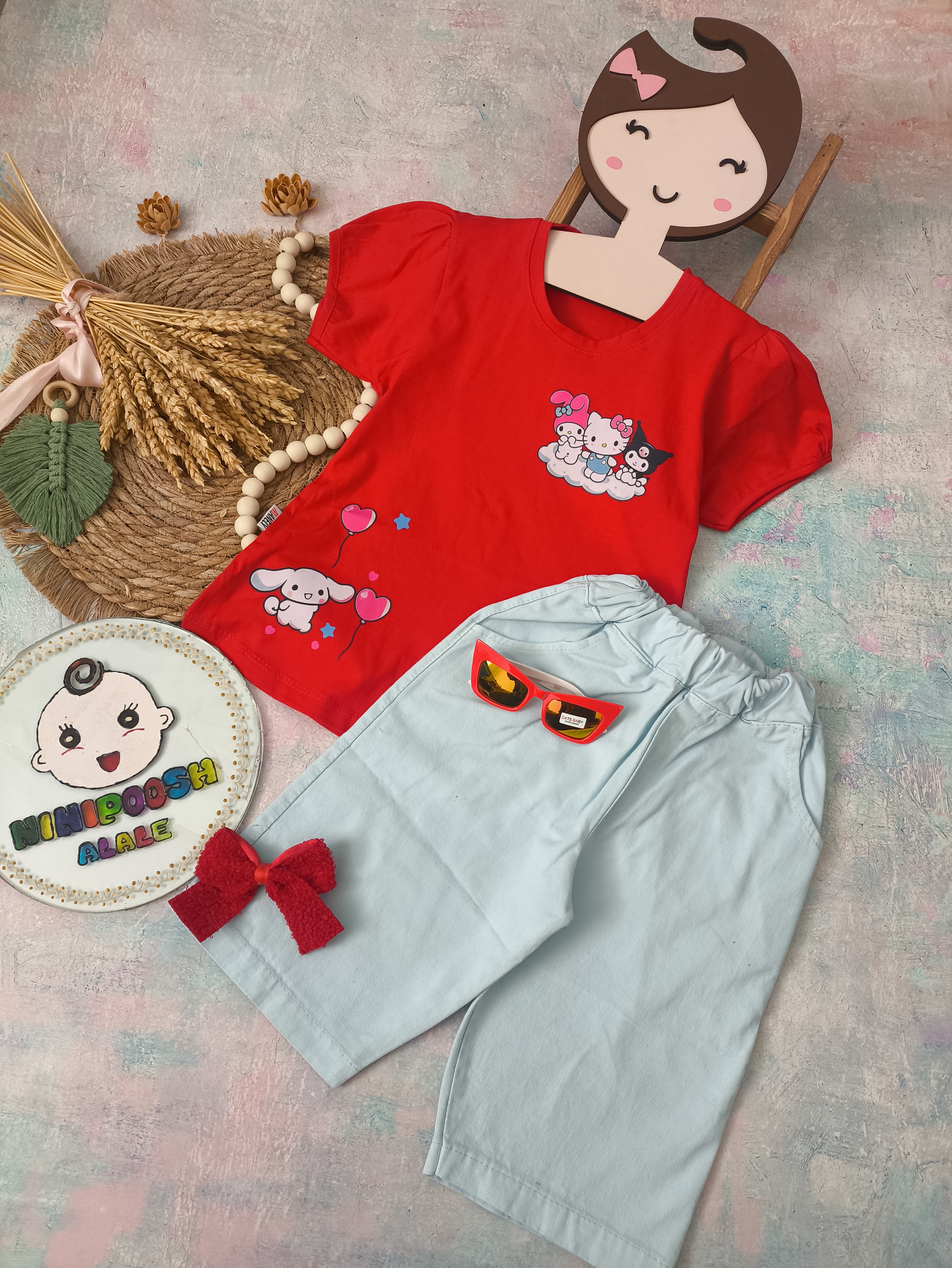 یه ست جذاب و خوش قیمت که شلوارکش کتانه با یه رنگ جذاب و خوشگل آبی آسمانی چون سادس میتونی با هر تیشرتی ستش کنی کمر کشی و راحت