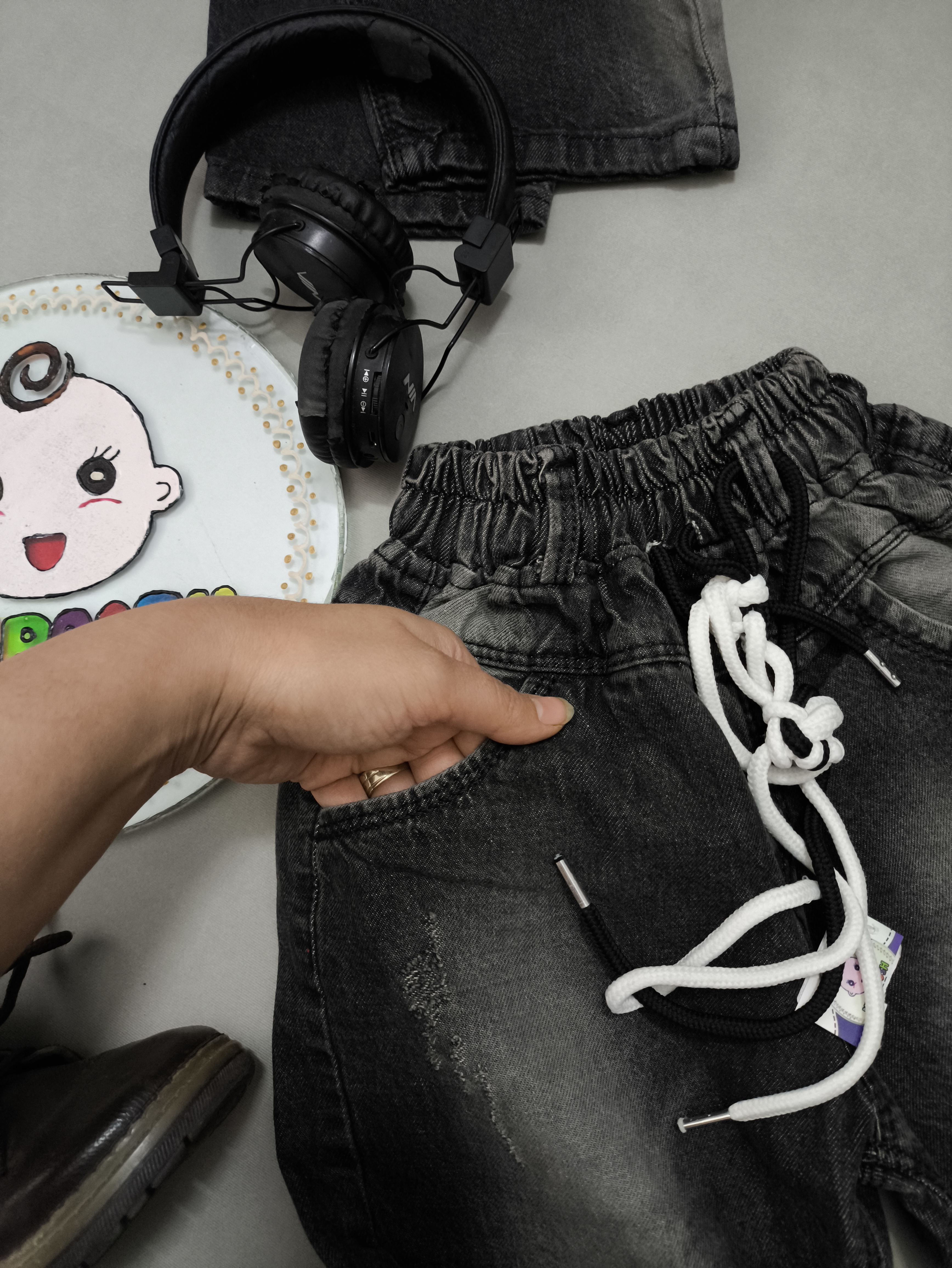 شلوار لی ترند و جذابمون که مدل مام هست و تینت های کرم روش خورده و الحق که جذاب شده ✌🏻